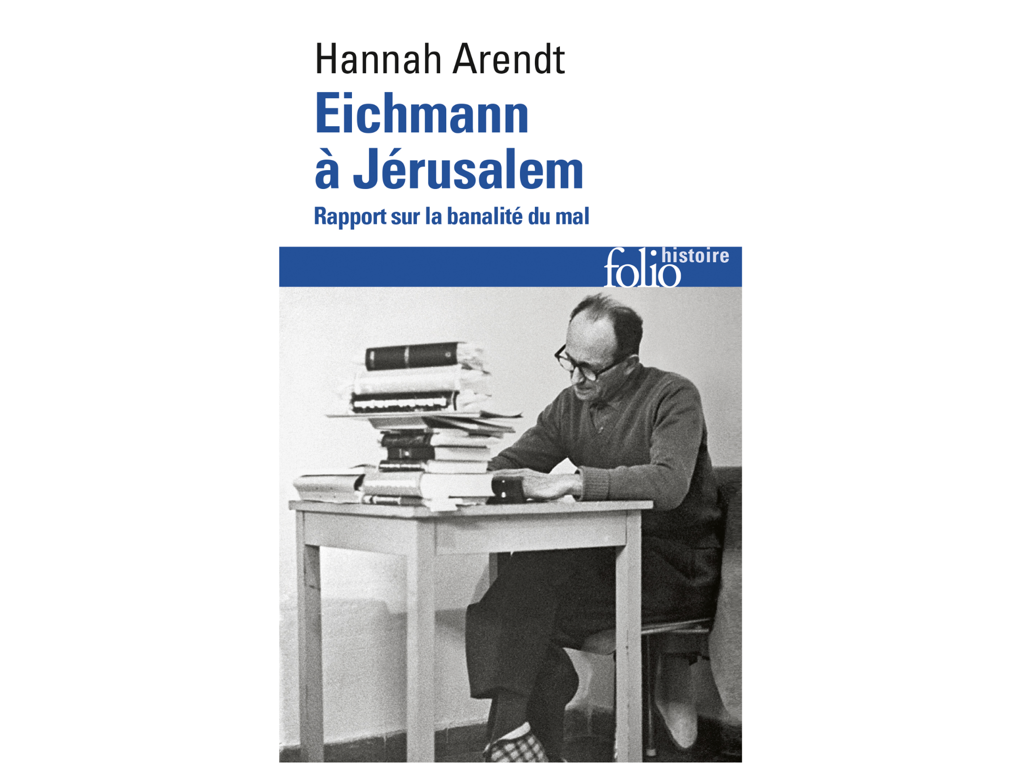 Eichmann à Jérusalem de Hannah Arendt. Le livre est une recension des cinq chroniques que la philosophe a tenu pour le New Yorker en 1963, lorsqu’elle suivit à Jérusalem le procès d’Adolf Eichmann, l’un des principaux organisateurs de la déportation des Juifs et donc de la Shoah.